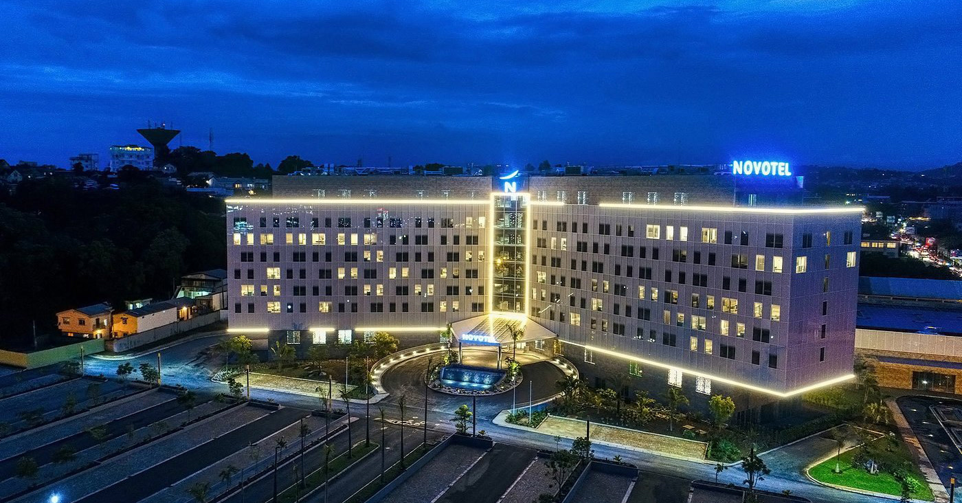 An easy 15-minute drive from the international airport serving Madagascar's capital, the 5-star Novotel Antananarivo is located in the heart of the city's business and shopping district. The ultra-contemporary luxury hotel's 180 rooms have panoramic views of the city, courtyard gardens or nearby hills. Within walking distance is Tsarasaotra Bird Park, a sanctuary for protected wetland birds. Well-appointed guest rooms feature sleek modern design and decor in a calming palette of gray and white with turquoise accents. Each has a mini bar, satellite TV, complimentary Wi-Fi safe, desk and a settee for lounging. First-rate amenities include a swimming pool, fitness center and spa complete with steam room, sauna and hammam. The Skybar offers a spectacular vantage point on Antananarivo, while the terrace overlooks the hotel's lush courtyard. Trio Restaurant serves Malagasy classics alongside international favorites in an elegant setting, and Teppanyaki showcases Japanese cuisine prepared in an open kitchen for guests’ entertainment. Breakfast is continental and colorful with an array of fresh fruit and juices. Novotel is part of the Accor Group, which delivers ambitious conservation targets for the tourist industry, including working with local communities and overhauling all aspects of its operations, from water consumption to waste management, eliminating single-use plastics and sourcing sustainable food chains for its restaurants.